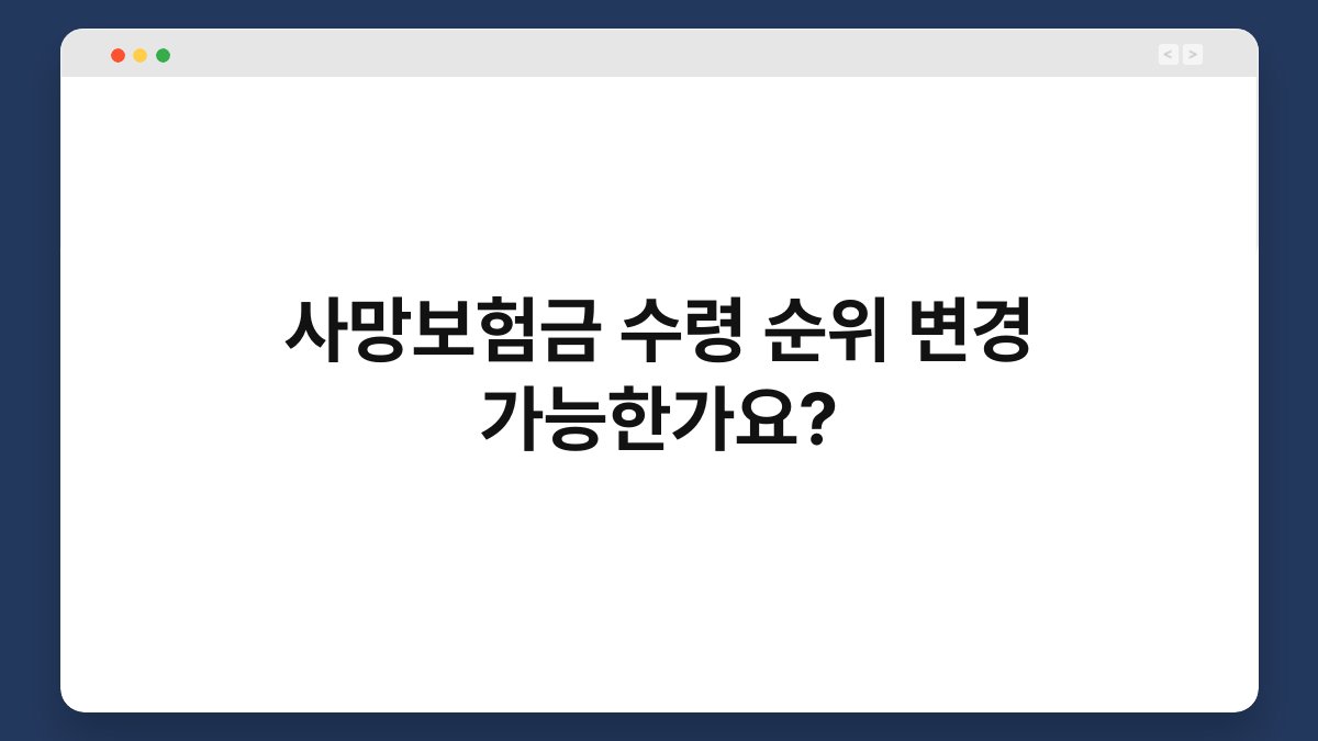 사망보험금에 대한 이야기를 들어보셨나요? 많은 분들이 이 보험금 수령 순위에 대해 궁금해하시곤 합니다. 특히, 사망보험금을 수령할 수 있는 사람의 순위를 변경할 수 있는지에 대한 질문이 많습니다. 오늘은 이 주제를 중심으로 다양한 정보를 공유해보려 합니다. 이 글을 통해 사망보험금 수령 순위 변경에 대한 명확한 이해를 돕고자 합니다.