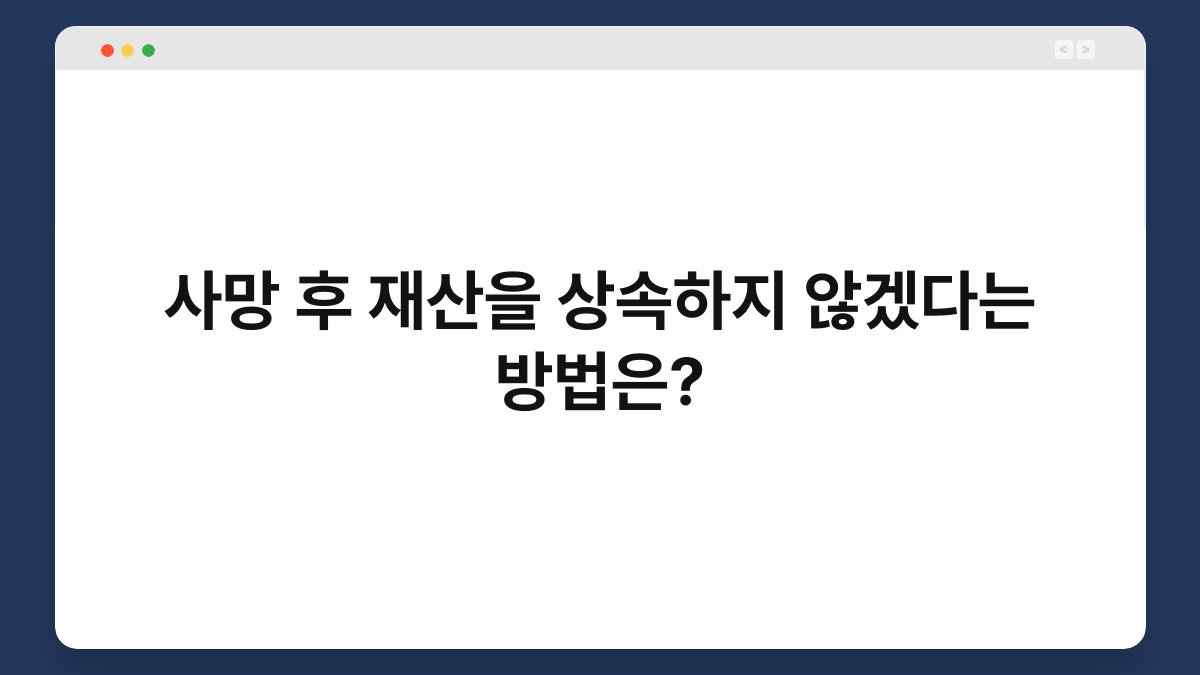 사망 후 재산을 상속하지 않겠다는 방법에 대해 고민해본 적이 있으신가요? 많은 분들이 상속 문제에 대해 불안감을 느끼지만, 사실 해결책은 다양합니다. 특히, 상속을 원하지 않을 경우 어떤 방법이 있는지 아는 것은 매우 중요합니다. 이 글에서는 사망 후 재산을 상속하지 않기 위한 방법과 그 과정에서 알아야 할 사항들을 자세히 설명드리겠습니다. 끝까지 읽으시면 유용한 정보를 얻으실 수 있을 거예요.