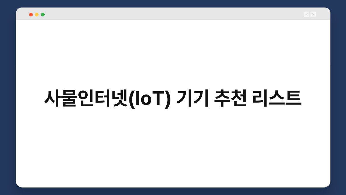 IoT 기기를 통해 우리는 집안의 에너지를 절약하고, 보안을 강화하며, 심지어 건강을 관리할 수 있습니다. 이러한 기기들은 우리의 삶을 보다 스마트하게 만들어주는 필수 아이템이 되고 있습니다.