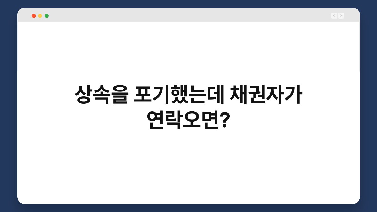 상속을 포기했는데 채권자가 연락을 오는 경우, 당황하지 말고 올바른 정보를 바탕으로 대처하세요. 법적 절차와 상담을 통해 문제를 해결할 수 있습니다. 지금이라도 필요한 조치를 취해보는 건 어떨까요?