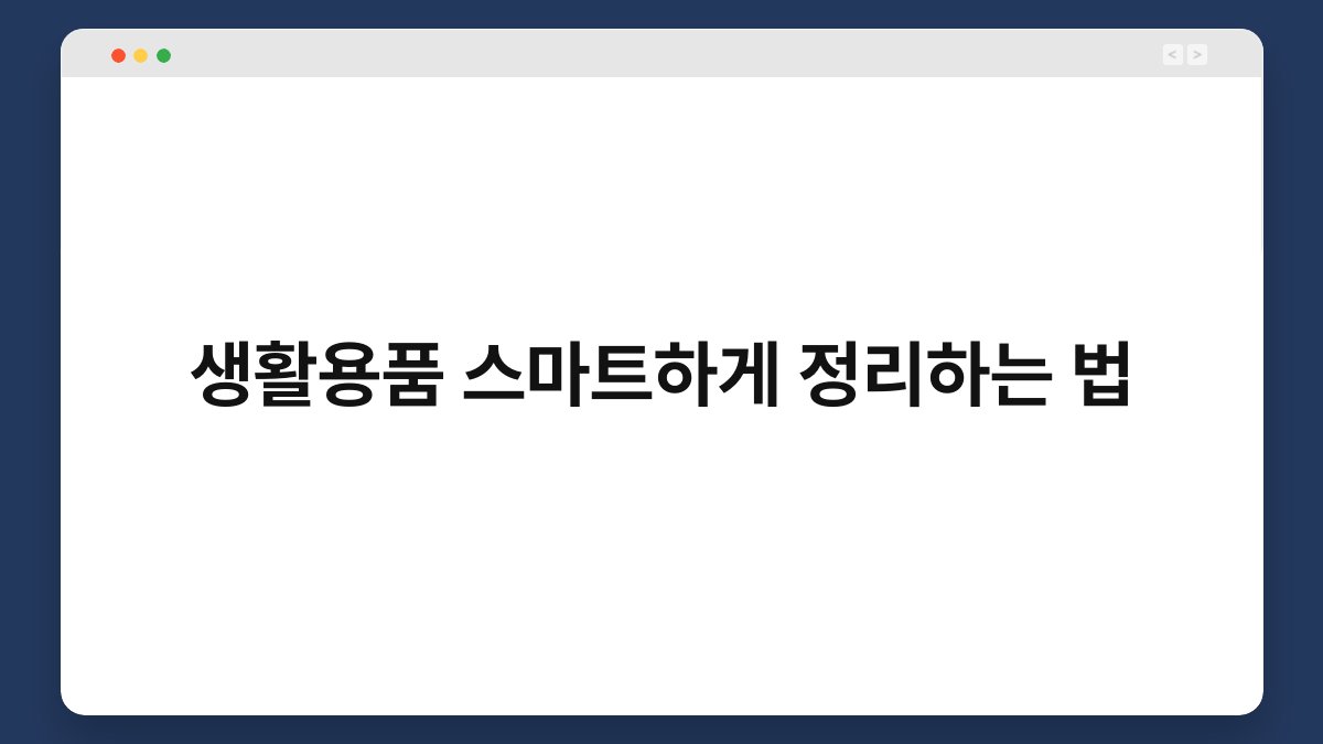 우리의 일상은 다양한 생활용품으로 가득 차 있습니다. 하지만 시간이 지날수록 이 물건들이 쌓여만 가고, 정리가 어려워지죠. 여러분도 그런 경험이 있으신가요? 이번 글에서는 생활용품을 스마트하게 정리하는 법을 소개해드릴게요. 정리의 기술을 배우면 공간을 효율적으로 활용하고, 더 나아가 마음의 여유도 찾을 수 있습니다. 함께 읽어보시죠!