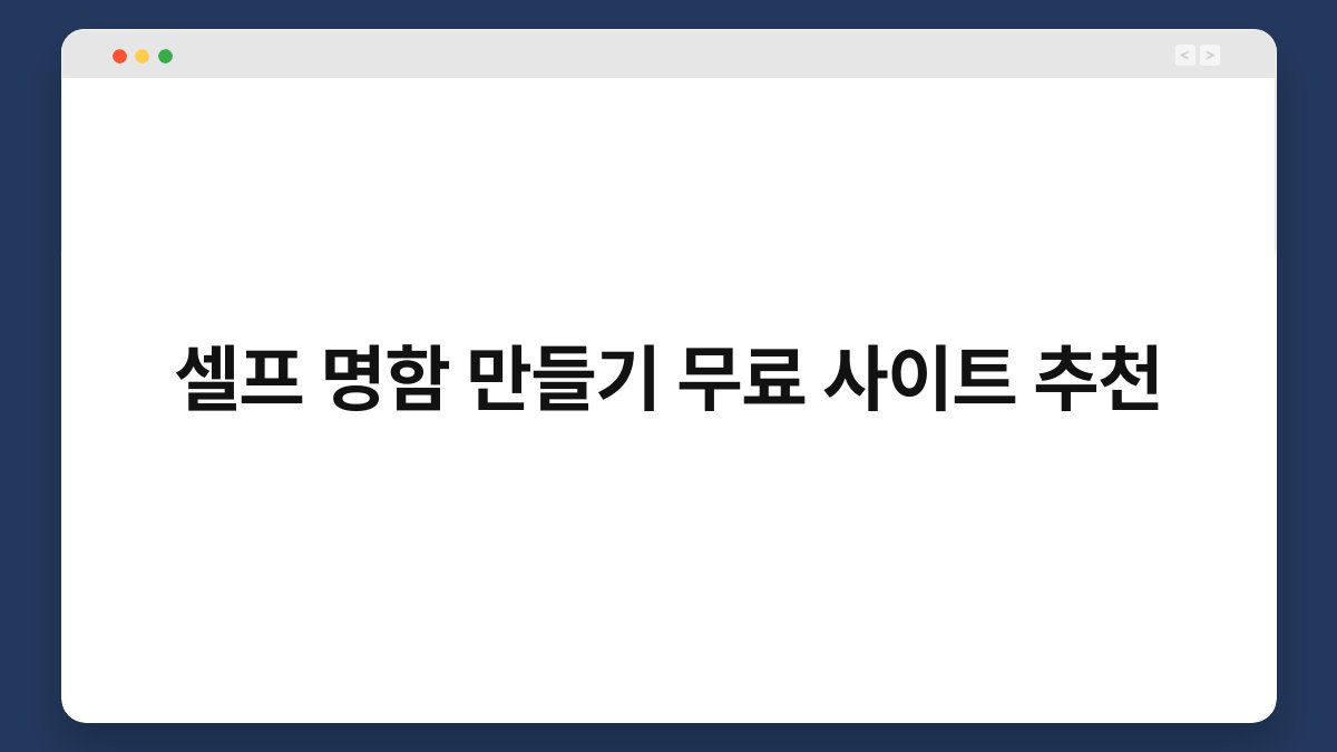 지금 바로 무료 사이트를 활용해 나만의 멋진 명함을 만들어보는 건 어떨까요? 다양한 디자인 옵션을 통해 여러분의 개성을 표현하세요!