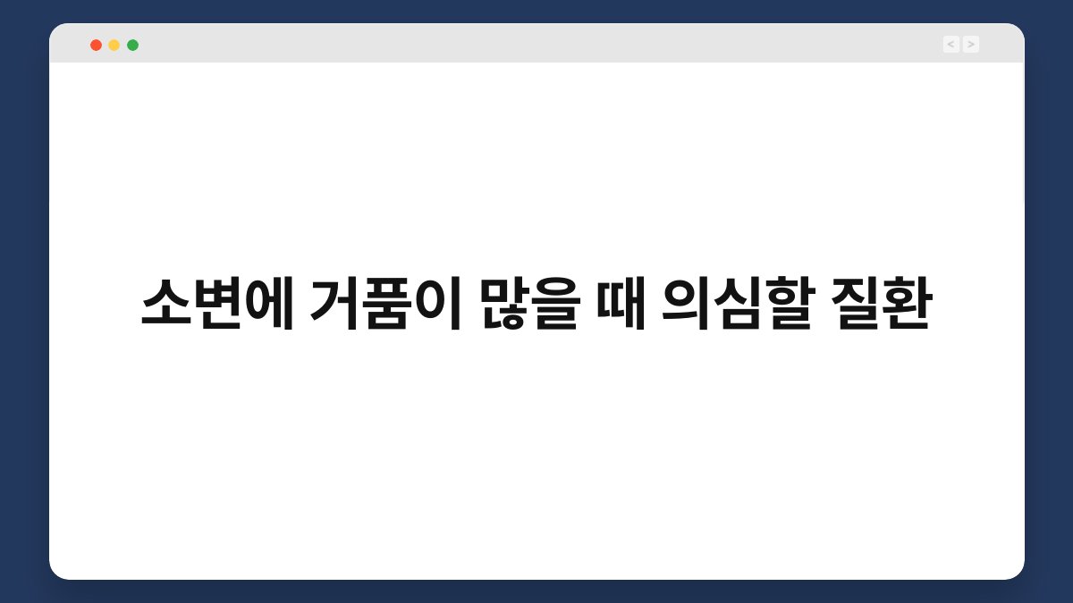 소변에 거품이 많을 때, 여러분은 어떤 생각이 드시나요? 대개는 피곤하거나 스트레스를 받았을 때, 혹은 수분 섭취가 부족할 때 나타나는 현상으로 여겨지기 쉽습니다. 하지만 소변에 거품이 많다면 그 뒤에 숨겨진 질환을 의심해볼 필요가 있습니다. 이 글에서는 소변에 거품이 많을 때 의심할 수 있는 질환에 대해 살펴보겠습니다. 여러분의 건강을 지키기 위해 꼭 알아두어야 할 정보들이니 끝까지 함께해 주세요.