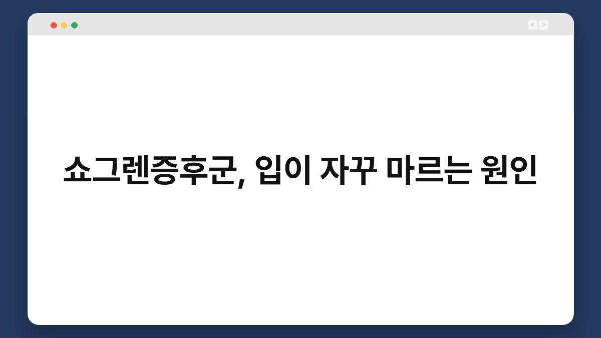입이 자꾸 마르는 경험, 누구나 한 번쯤은 겪어보셨을 겁니다. 특히 이런 증상이 지속된다면 불안감을 느끼기 마련이죠. 이 글에서는 입이 마르는 원인 중 하나인 쇼그렌증후군에 대해 알아보겠습니다. 이 증후군은 단순한 탈수와는 다르게, 면역 체계의 이상으로 발생하는 질환입니다. 그럼, 쇼그렌증후군이 무엇인지, 그리고 입이 자주 마르는 이유를 함께 살펴보도록 하겠습니다.