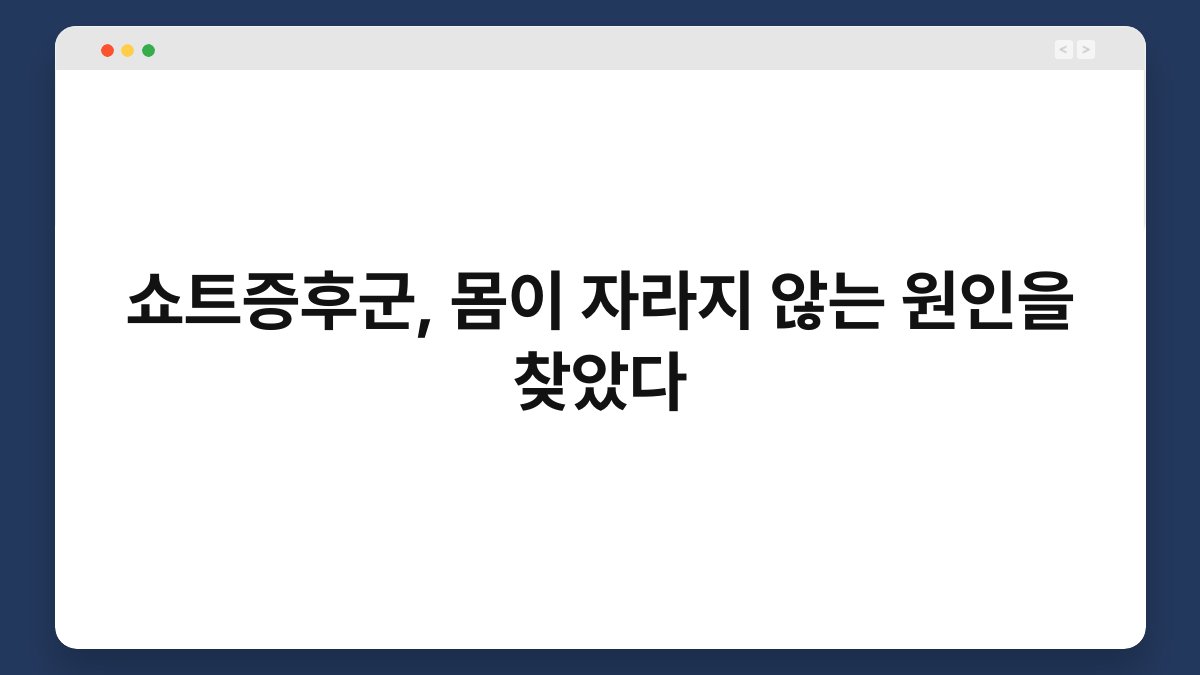 몸이 자라지 않는 문제, 즉 쇼트증후군은 많은 사람에게 고민거리가 됩니다. 이 증후군은 다양한 원인으로 인해 발생할 수 있으며, 그 해결책을 찾는 것이 중요합니다. 오늘은 쇼트증후군의 원인과 이를 극복하는 방법에 대해 알아보겠습니다. 이 글을 통해 여러분은 쇼트증후군에 대한 이해를 높이고, 실질적인 정보를 얻을 수 있을 것입니다. 함께 알아보시죠.