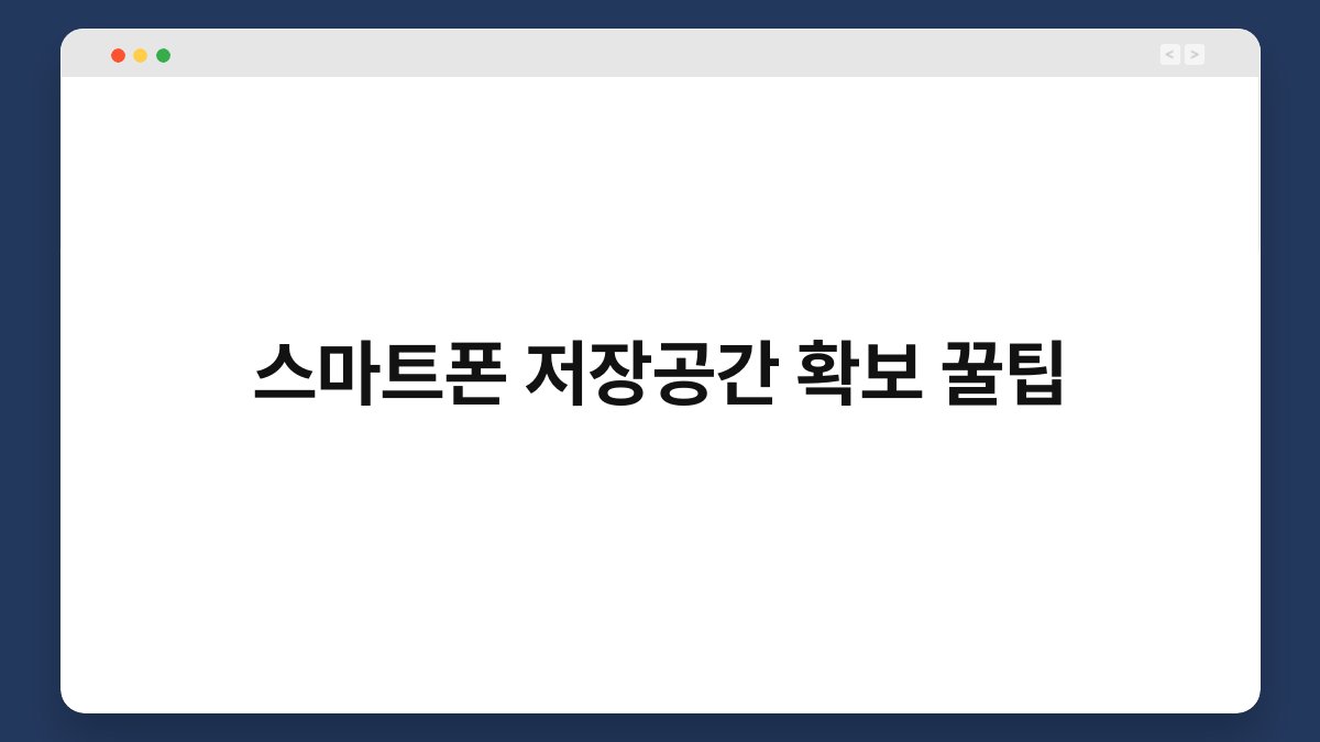 스마트폰의 저장공간, 점점 부족해지는 걸 느끼시죠? 사진, 동영상, 앱이 쌓여가면서 불필요한 스트레스를 받는 일이 많습니다. 하지만 걱정하지 마세요. 스마트폰 저장공간 확보를 위한 꿀팁을 소개하겠습니다. 이 글을 통해 간단한 방법으로 여러분의 스마트폰을 가볍게 만들 수 있을 거예요. 함께 알아보도록 하죠.