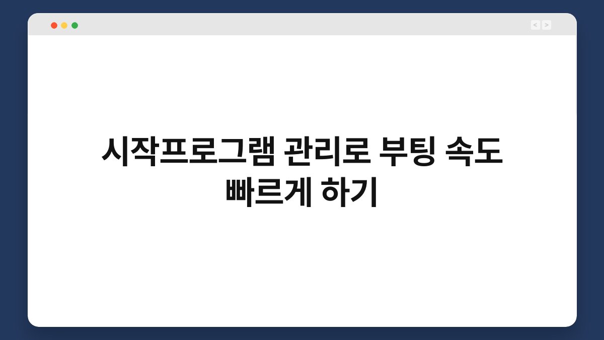 컴퓨터를 켜고 기다리는 시간이 길어지면 불편하신가요? 부팅 속도를 개선하는 방법으로 시작프로그램 관리를 고려해보세요. 많은 프로그램들이 자동으로 시작되면서 부팅 속도를 느리게 만들곤 합니다. 이 글에서는 시작프로그램을 효율적으로 관리하여 부팅 속도를 빠르게 하는 방법을 소개하겠습니다. 간단한 설정으로 여러분의 PC를 더 빠르게 만들어 보세요.