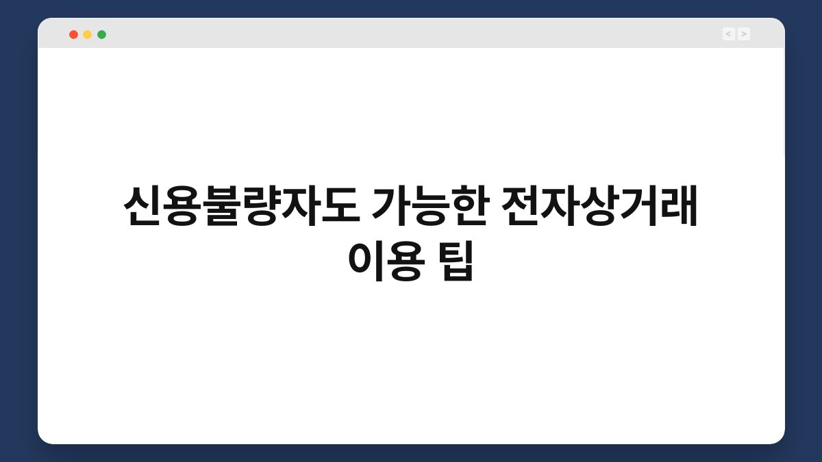 신용불량자라는 단어는 종종 부정적인 이미지를 동반하지만, 전자상거래의 세계에서는 그리 큰 장애물이 아닙니다. 신용이 좋지 않은 상황에서도 온라인 쇼핑을 즐길 수 있는 방법들이 존재하죠. 이 글에서는 신용불량자도 전자상거래를 이용할 수 있는 유용한 팁을 소개하겠습니다. 신용불량자라고 해서 소비의 기회를 포기할 필요는 없습니다. 함께 알아보며 새로운 가능성을 찾아보세요.