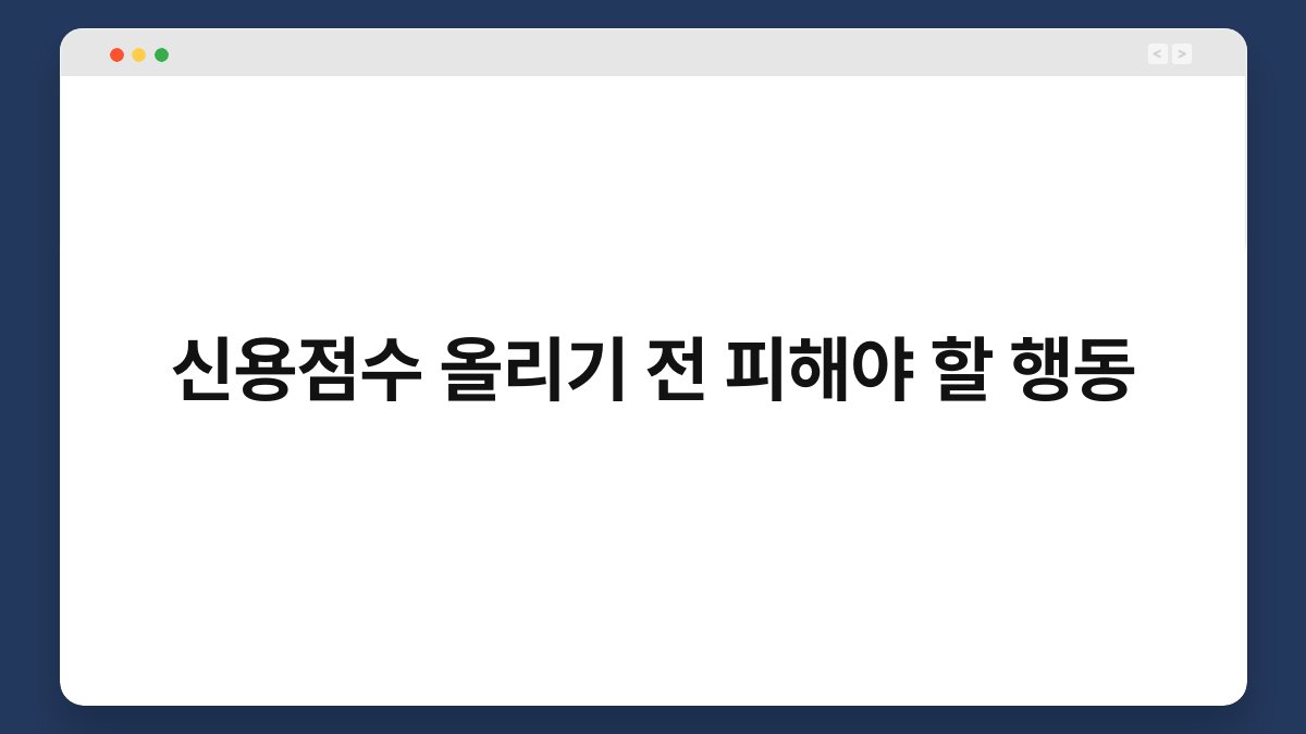 신용점수는 금융 생활에서 매우 중요한 요소입니다. 하지만 신용점수를 올리기 위해 무심코 저지를 수 있는 행동들이 있습니다. 이 글에서는 신용점수를 높이고자 할 때 피해야 할 행동들을 살펴보겠습니다. 신용점수 관리에 대한 올바른 정보를 알고, 실수 없이 신용을 개선할 수 있도록 도와드릴게요. 함께 알아보시죠!