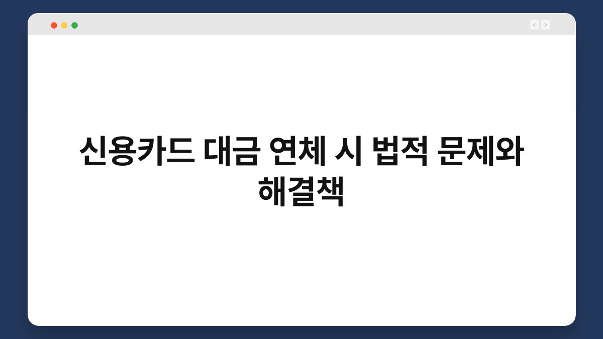 신용카드 대금 연체, 누구에게나 일어날 수 있는 문제입니다. 하지만 연체가 발생했을 때, 그로 인해 발생하는 법적 문제는 생각보다 심각할 수 있습니다. 이 글에서는 신용카드 대금 연체 시 발생할 수 있는 법적 문제와 해결책에 대해 자세히 살펴보겠습니다. 연체가 가져오는 여러 가지 상황을 이해하고, 이를 해결하기 위한 방법을 알아보면 좋겠습니다. 함께 이 문제를 해결해 나가보아요.