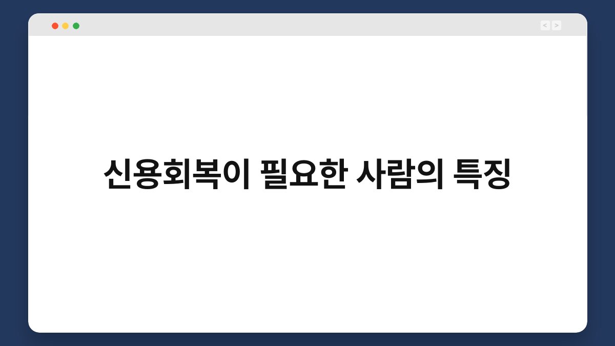 재정 관리에 대한 지식이 부족한 것도 신용회복이 필요한 사람들의 특징입니다. 많은 사람들이 기본적인 예산 관리조차 하지 못하고, 소비 습관을 개선할 기회를 놓치곤 합니다.