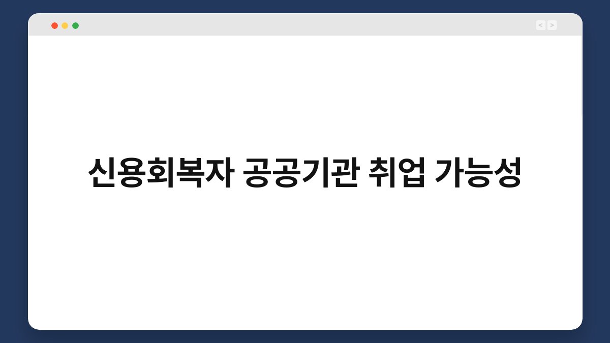 신용회복자라는 단어, 들어보셨나요? 신용회복자는 재정적인 어려움으로 인해 신용이 저하된 사람들을 의미합니다. 이들은 다시 사회에 복귀하고 경제적 자립을 이루고자 하는 목표를 가지고 있습니다. 하지만 공공기관 취업 가능성에 대한 정보는 부족한 경우가 많습니다. 오늘은 신용회복자가 공공기관에 취업할 수 있는 방법과 그 과정에서의 유의사항을 알아보도록 하겠습니다. 이 글을 통해 여러분의 궁금증을 해결해 드리겠습니다.