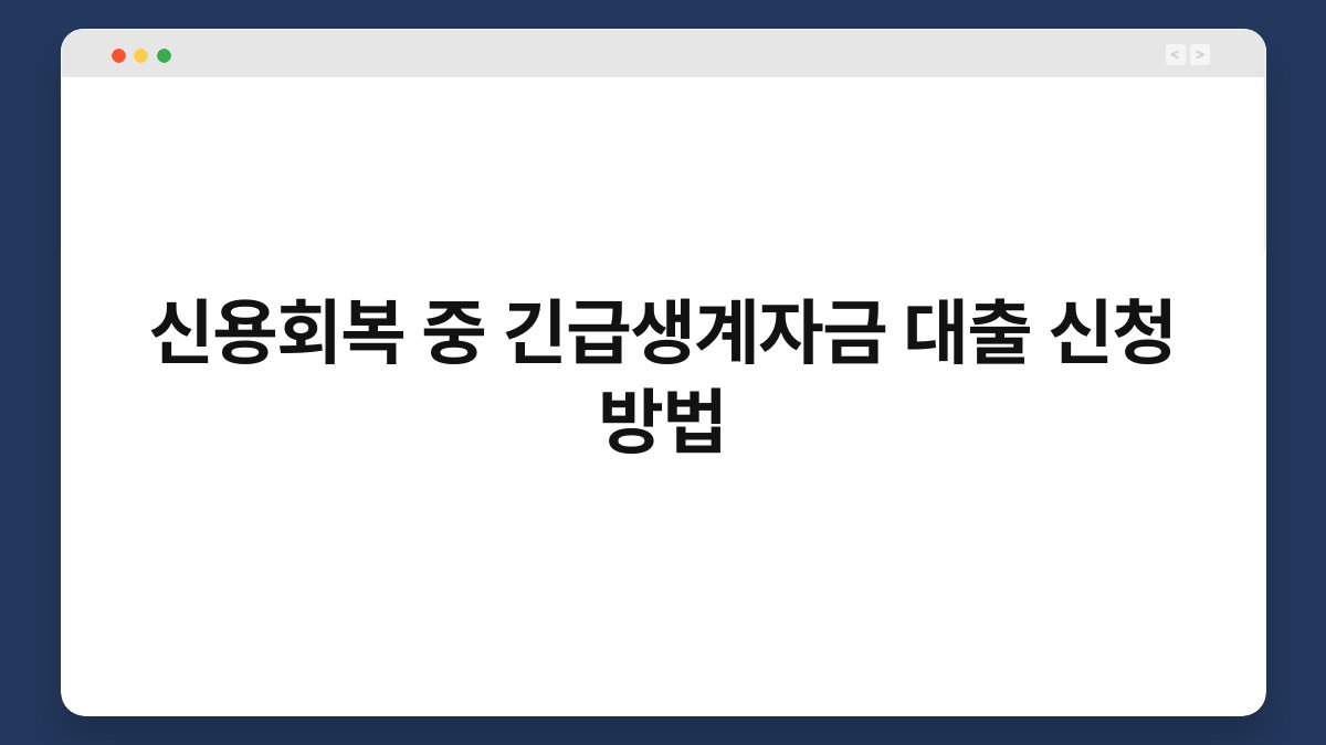 어려운 시기를 겪고 계신가요? 신용회복 중에 긴급생계자금이 필요하신 분들을 위해 이 글을 준비했습니다. 대출 신청 방법을 통해 조금이나마 도움을 드리고자 합니다. 복잡한 절차에 대한 걱정은 접어두세요. 이 글을 통해 간단하고 명확하게 신청 방법을 안내해드리겠습니다.