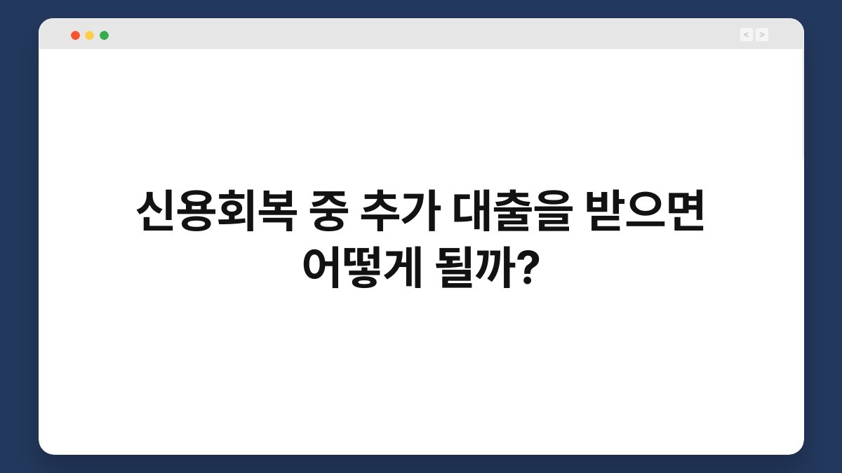 Q1: 신용회복 중 추가 대출을 받으면 어떤 위험이 있나요?