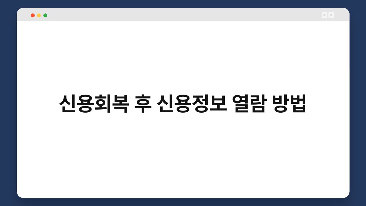 신용회복 후 신용정보를 열람하는 것은 재정 관리를 위한 필수적인 과정입니다. 자신의 신용 상태를 정확히 파악하고, 필요한 조치를 취하는 것이 중요합니다. 지금 바로 신용정보를 확인하고, 더 나은 금융 생활을 시작해보세요!