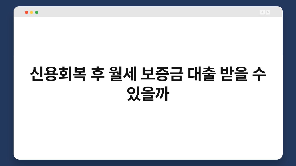 주택을 구하는 과정에서 월세 보증금 대출이 필요한 경우가 많습니다. 하지만 신용회복을 통해 신용을 회복한 후에도 대출이 가능할지 궁금하신 분들이 많을 텐데요. 이 글에서는 신용회복 후 월세 보증금 대출을 받을 수 있는지, 그리고 그 과정에서 알아야 할 사항들을 자세히 설명드리겠습니다. 신용회복이란 무엇인지, 대출 조건은 어떻게 되는지, 그리고 대출을 받을 때 유의해야 할 점들을 함께 살펴보아요.