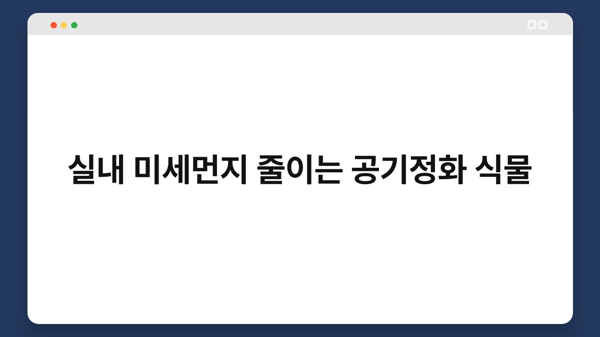 실내에서 미세먼지 문제는 많은 사람들에게 큰 걱정거리입니다. 특히, 요즘처럼 환기가 어려운 계절에는 더욱 그렇죠. 하지만 공기정화 식물을 활용하면 실내 미세먼지를 줄이는 데 큰 도움이 될 수 있습니다. 이 글에서는 미세먼지를 효과적으로 줄이는 공기정화 식물에 대해 알아보겠습니다. 당신의 건강한 실내 환경을 위해 꼭 필요한 정보가 가득하니, 끝까지 함께해 주세요.