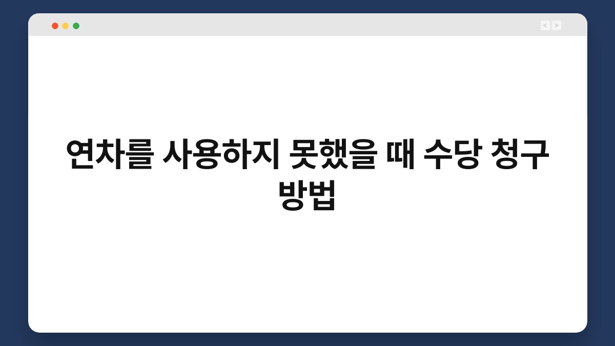 연차를 사용하지 못한 적이 있으신가요? 많은 분들이 연차를 소중하게 여기면서도, 여러 가지 이유로 이를 활용하지 못하는 경우가 많습니다. 그런데 연차를 사용하지 못했다면, 수당으로 청구할 수 있다는 사실, 알고 계셨나요? 이번 글에서는 연차를 사용하지 못했을 때 수당 청구 방법에 대해 자세히 알아보겠습니다. 실질적인 정보와 팁을 통해 여러분의 권리를 보호하는 방법을 소개할게요. 끝까지 읽어보시면 유용한 정보가 가득할 것입니다.