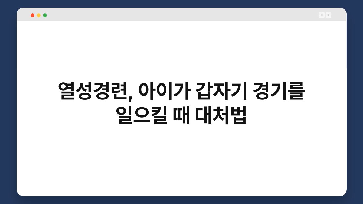 갑자기 아이가 경련을 일으킨다면, 부모로서의 마음은 어떨까요? 놀라움과 걱정이 동시에 밀려오는 순간, 어떻게 대처해야 할지 막막할 수 있습니다. 열성경련은 어린이에게 흔히 발생하는 현상이지만, 부모님이 알아두어야 할 중요한 사항들이 많습니다. 이번 글에서는 아이가 갑자기 경기를 일으킬 때 대처법과 관련 정보들을 자세히 안내해 드리겠습니다. 함께 이 어려운 상황을 헤쳐 나갈 준비를 해볼까요?