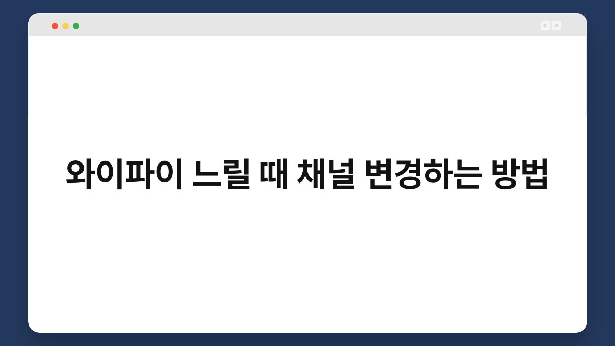 와이파이가 느릴 때, 정말 답답한 경험이죠? 특히 중요한 업무를 하거나 스트리밍을 즐길 때 속도가 떨어지면 더욱 그렇습니다. 하지만 걱정하지 마세요! 와이파이의 속도를 개선할 수 있는 방법 중 하나가 바로 채널 변경입니다. 이 글에서는 와이파이 느릴 때 채널 변경하는 방법을 자세히 알아보겠습니다. 간단한 설정으로도 큰 차이를 느낄 수 있으니, 끝까지 함께해 주세요!
