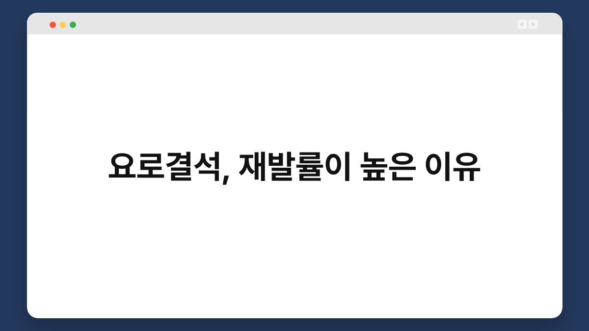 요로결석, 정말 고통스러운 경험이죠? 많은 사람들이 이 질환을 한 번 겪고 나면 재발할까 두려워합니다. 실제로 요로결석의 재발률은 상당히 높은데요, 그 이유는 무엇일까요? 이 글에서는 요로결석의 재발 원인과 예방 방법에 대해 알아보겠습니다. 함께 살펴보면서 요로결석에 대한 이해를 높여보세요.