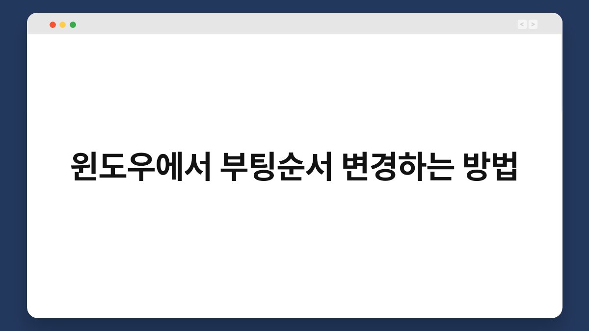 컴퓨터를 사용할 때, 부팅 순서가 중요한 역할을 한다는 사실, 알고 계신가요? 부팅 순서가 잘못 설정되면 원하는 운영체제를 선택하지 못해 당황스러운 상황이 발생할 수 있습니다. 특히, 여러 운영체제를 설치한 경우에는 더욱 그렇죠. 이번 글에서는 윈도우에서 부팅 순서를 변경하는 방법을 자세히 알아보겠습니다. 이 정보를 통해 여러분의 컴퓨터를 더욱 효율적으로 사용할 수 있는 방법을 제시할게요.