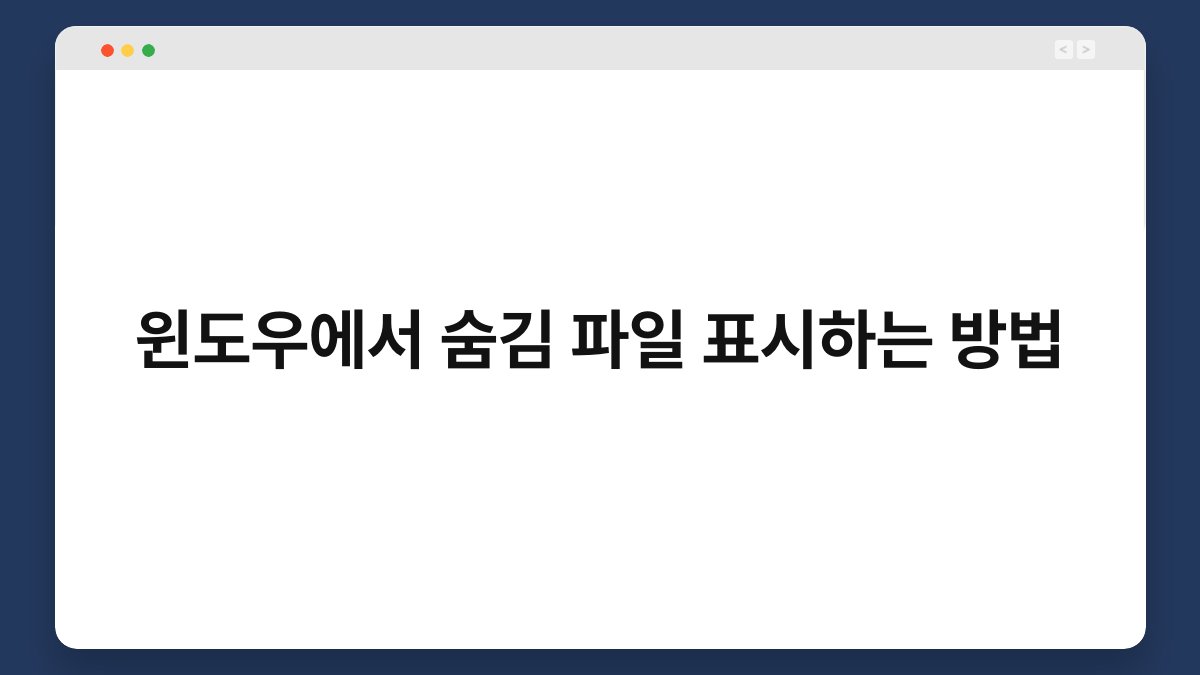 컴퓨터를 사용하다 보면 숨김 파일이 필요할 때가 있습니다. 하지만 기본적으로 윈도우는 특정 파일을 숨김으로 설정해 두기 때문에 쉽게 찾기 어려운 경우가 많죠. 이 글에서는 윈도우에서 숨김 파일을 표시하는 방법에 대해 알아보겠습니다. 숨김 파일을 표시하는 방법을 이해하면, 필요한 정보를 빠르게 찾을 수 있어 더욱 효율적인 작업이 가능해질 것입니다. 자, 그럼 어떻게 숨김 파일을 표시할 수 있는지 살펴보겠습니다.