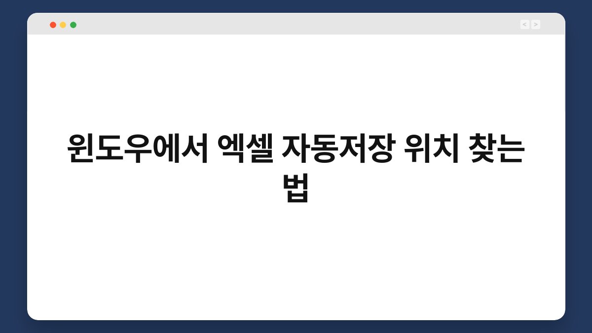 엑셀의 자동 저장 파일은 기본적으로 특정 폴더에 저장됩니다. 이 위치는 보통 ‘C:\Users\사용자이름\AppData\Roaming\Microsoft\Excel\AutoRecover’입니다. 이 경로를 통해 자동 저장된 파일을 쉽게 찾을 수 있습니다. 하지만 사용자의 설정에 따라 다를 수 있으니, 경로를 확인하는 것이 중요합니다.
