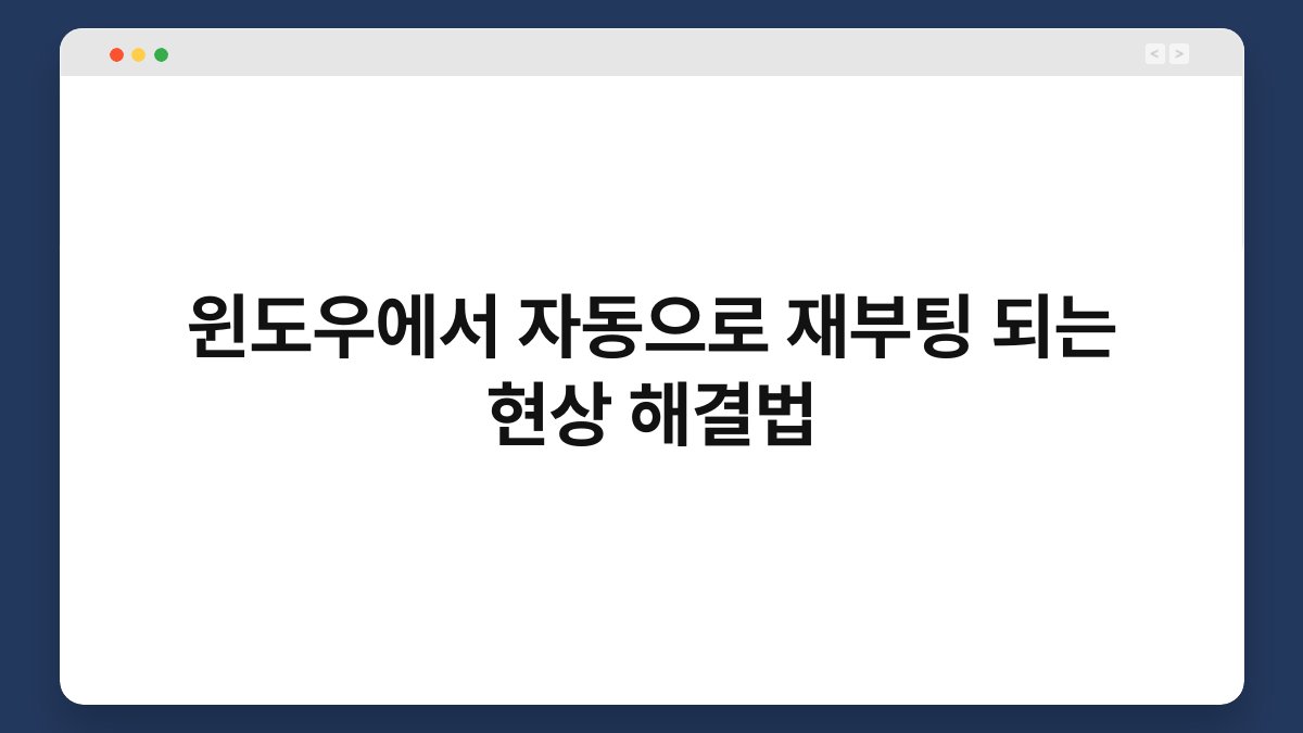 윈도우에서 자동으로 재부팅되는 현상은 많은 사용자에게 큰 스트레스를 주는 문제입니다. 갑작스러운 재부팅은 작업 중인 내용을 잃게 만들고, 시스템 안정성에도 영향을 미칠 수 있습니다. 다행히도 이 문제를 해결할 수 있는 여러 방법이 있습니다. 이 글에서는 윈도우에서 자동 재부팅 현상을 해결하는 방법을 자세히 소개하겠습니다. 함께 알아보며 문제를 해결해보아요!