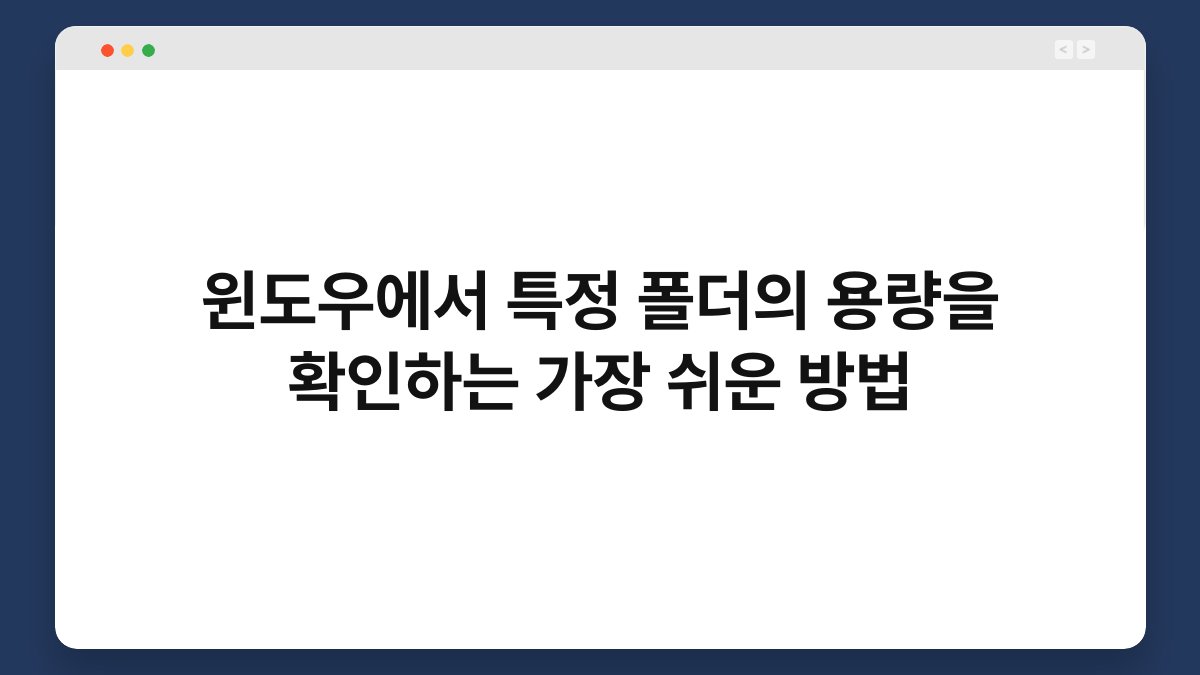 윈도우에서 특정 폴더의 용량을 확인하고 싶을 때, 방법이 여러 가지 있다는 사실을 알고 계신가요? 많은 분들이 간단한 방법으로 필요한 정보를 얻을 수 있다는 점을 간과하시곤 합니다. 이번 글에서는 윈도우에서 특정 폴더의 용량을 확인하는 가장 쉬운 방법을 소개하려고 합니다. 이 정보를 통해 불필요한 파일을 정리하고, 저장 공간을 효율적으로 관리할 수 있게 될 것입니다. 그럼, 함께 알아보도록 하겠습니다.