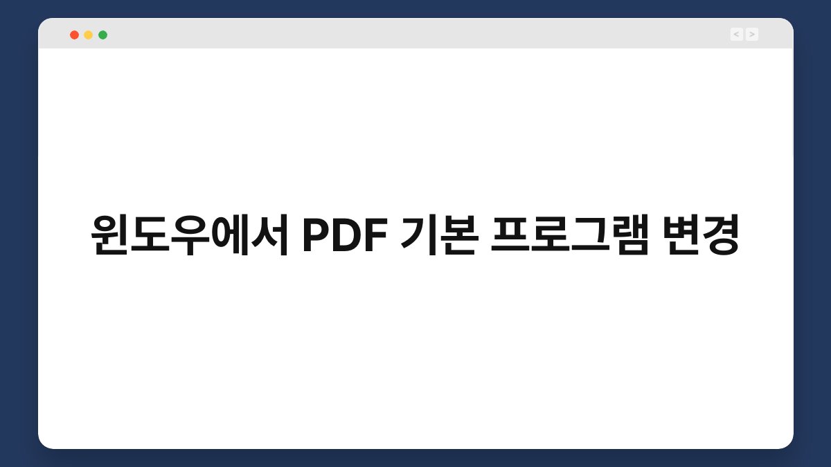윈도우에서 PDF 파일을 열 때마다 원하는 프로그램이 아닌 기본 프로그램이 실행되는 경우, 불편함을 느끼는 분들이 많으실 겁니다. 이러한 문제를 해결하기 위해 PDF 기본 프로그램을 변경하는 방법을 알아보겠습니다. 이 글에서는 간단한 단계로 원하는 프로그램을 기본으로 설정하는 방법을 소개할 예정입니다. 이 과정을 통해 여러분의 PDF 파일 관리가 한층 더 수월해질 것입니다. 자, 그럼 시작해볼까요?