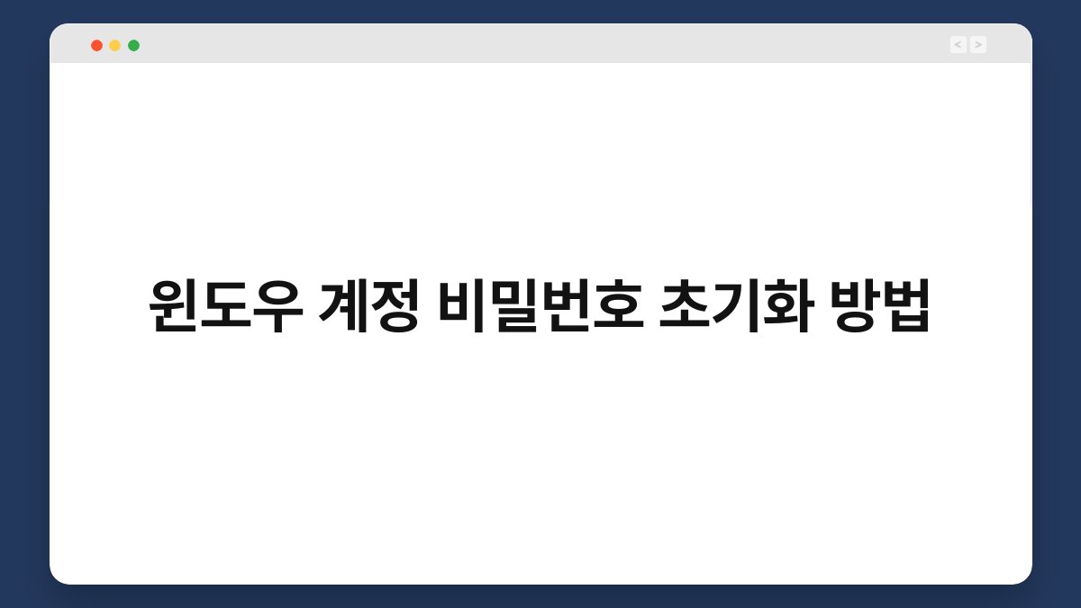 윈도우 계정 비밀번호를 잊어버렸다면 당황스러울 수 있습니다. 하지만 걱정하지 마세요. 이 글에서는 윈도우 계정 비밀번호 초기화 방법을 자세히 안내해 드리겠습니다. 비밀번호를 재설정하는 과정은 생각보다 간단하며, 몇 가지 단계만 거치면 됩니다. 함께 알아보며 문제를 해결해보세요.