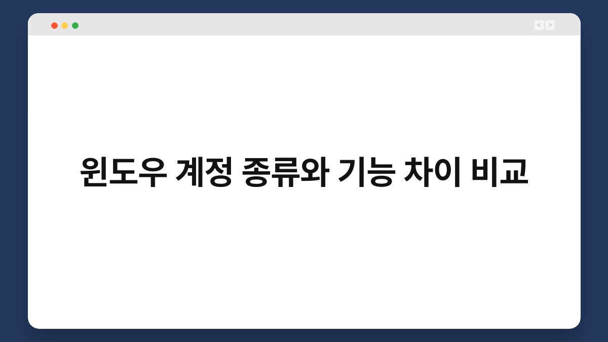 각 계정 유형에 따라 사용자 경험이 달라집니다. 관리자 계정은 다양한 기능을 활용할 수 있지만, 보안에 신경 써야 해요. 반면 표준 사용자 계정은 안전하지만 기능이 제한적입니다.