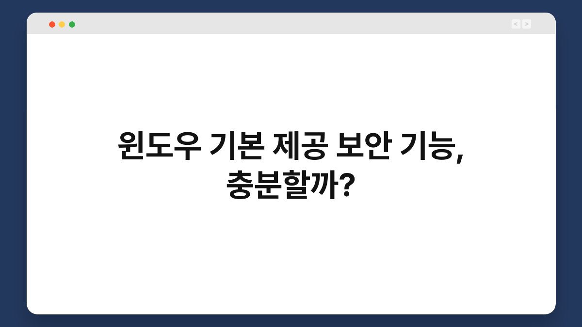 많은 사용자가 윈도우의 기본 보안 기능에 의존하지만, 이는 불안정할 수 있습니다. 가령, 최신 보안 패치가 적용되지 않거나, 사용자가 설정을 잘못할 경우 취약점이 발생할 수 있습니다. 따라서 기본 기능 외에도 추가적인 보안 조치를 고려해야 합니다.