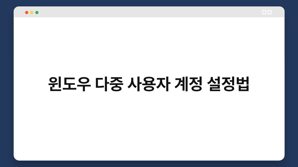 윈도우에서 다중 사용자 계정을 설정하는 방법, 궁금하시죠? 여러 사람이 동일한 컴퓨터를 사용할 때 각각의 계정을 만들어 개인적인 환경을 유지할 수 있습니다. 이 글에서는 윈도우 다중 사용자 계정 설정법을 단계별로 안내드릴 테니, 끝까지 함께해 주세요. 간단한 설정으로 개인화된 환경을 만들 수 있으니 기대해 주세요!