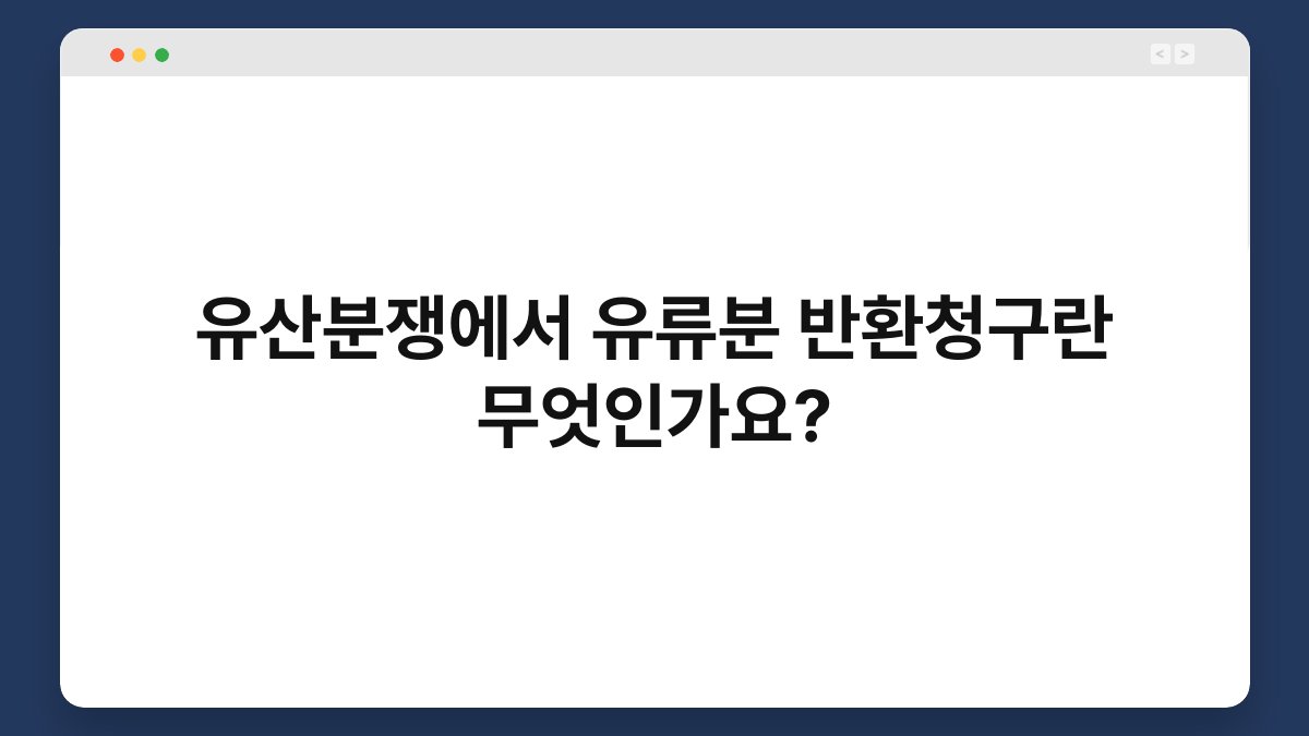 유산분쟁은 가족 간의 갈등을 초래할 수 있는 복잡한 문제입니다. 특히, 유류분 반환청구는 이러한 갈등의 핵심 요소로 작용합니다. 유산을 두고 다툼이 생길 때, 유류분이란 무엇인지, 어떻게 반환청구를 할 수 있는지 알아보는 것이 중요합니다. 이 글에서는 유류분 반환청구의 개념과 절차를 자세히 설명하겠습니다. 끝까지 읽으시면 유산분쟁에서의 권리와 의무를 이해하는 데 큰 도움이 될 것입니다.