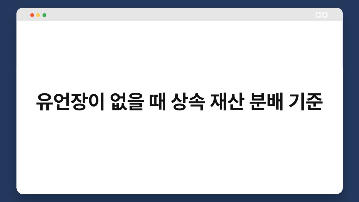 상속은 누구에게나 일어날 수 있는 일입니다. 하지만 유언장이 없을 때 상속 재산 분배 기준은 많은 사람들에게 혼란을 줄 수 있습니다. 이럴 때, 법적 규정과 절차를 이해하는 것이 중요합니다. 법이 정한 기준에 따라 재산이 어떻게 나누어지는지 알아보면, 미리 대비할 수 있는 방법을 찾을 수 있습니다. 이번 글에서는 유언장이 없을 때 상속 재산 분배 기준에 대해 자세히 설명드리겠습니다.