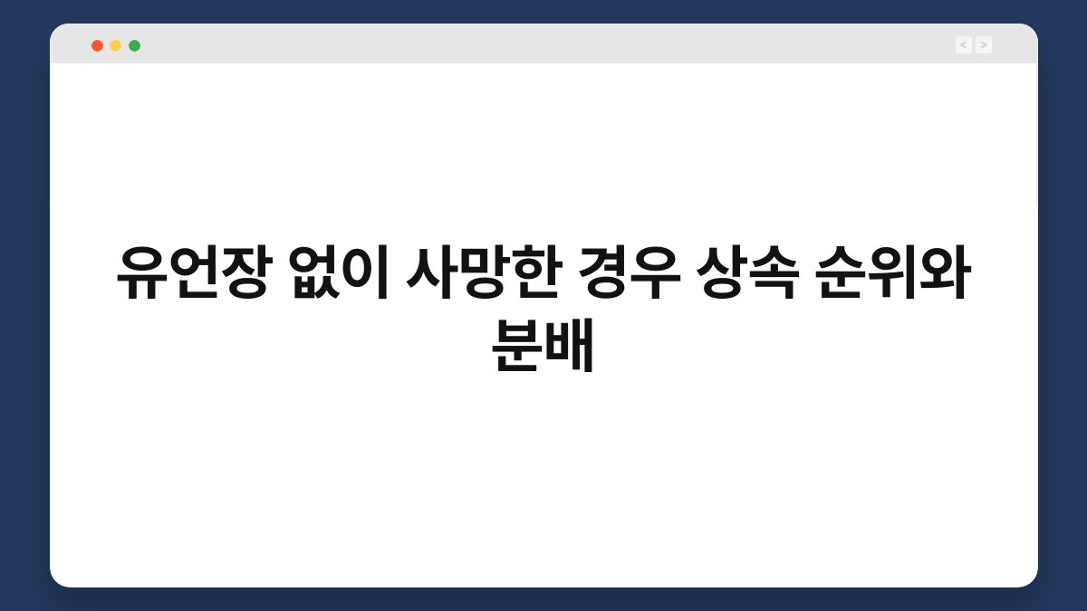 사랑하는 가족이나 친구를 잃는 일은 누구에게나 힘든 일입니다. 그런데 그러한 슬픈 사건 뒤에는 상속 문제도 따르게 되죠. 만약 유언장 없이 사망하게 된다면, 상속 순위와 분배는 어떻게 될까요? 많은 사람들이 이 부분에 대해 궁금해 하실 텐데요. 오늘은 유언장 없이 사망했을 때의 상속 순위와 분배 방법에 대해 알아보겠습니다. 이 글을 통해 필요한 정보를 얻으시길 바랍니다.