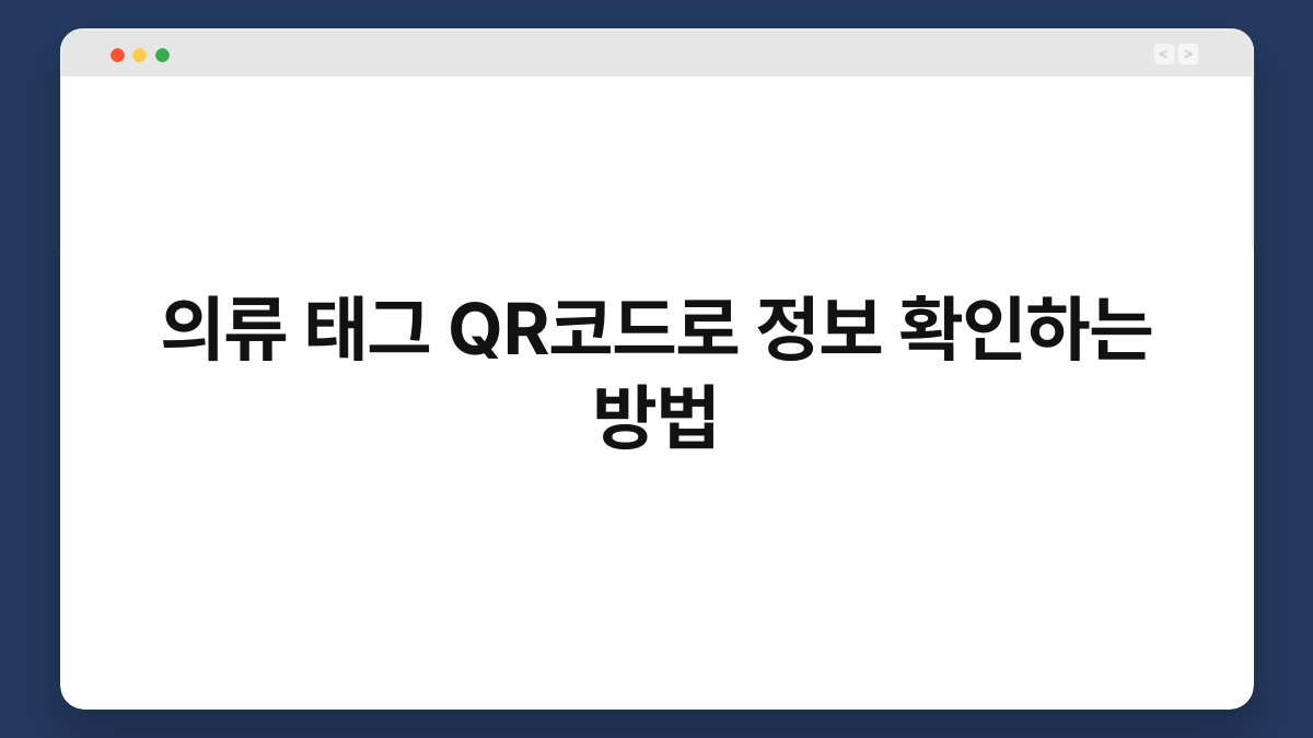 QR코드는 ‘Quick Response Code’의 약자로, 정보를 빠르게 전달하기 위해 설계된 2차원 바코드입니다. 이 코드는 다양한 정보를 담을 수 있어요. 문자, URL, 연락처 등 여러 형태로 활용되죠. 의류 태그에 QR코드가 포함되면, 소비자는 손쉽게 정보를 얻을 수 있습니다.