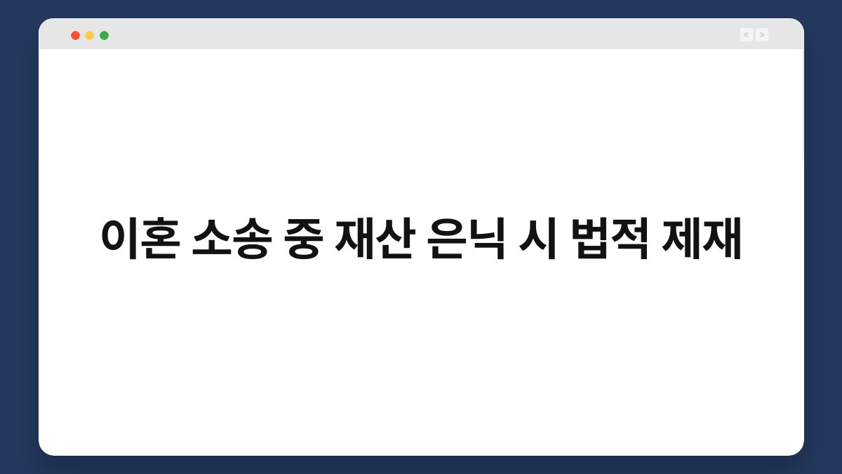 이혼 소송 중 재산 은닉은 많은 이들에게 심각한 문제로 다가옵니다. 특히, 상대방이 자신의 재산을 숨기거나 축소할 경우, 공정한 분할이 이루어지지 않을 수 있습니다. 이러한 상황에서 법적 제재가 얼마나 중요한지, 그리고 어떻게 대응해야 하는지를 살펴보겠습니다. 이 글을 통해 이혼 소송 중 재산 은닉의 법적 제재에 대해 깊이 있게 이해해 보세요.