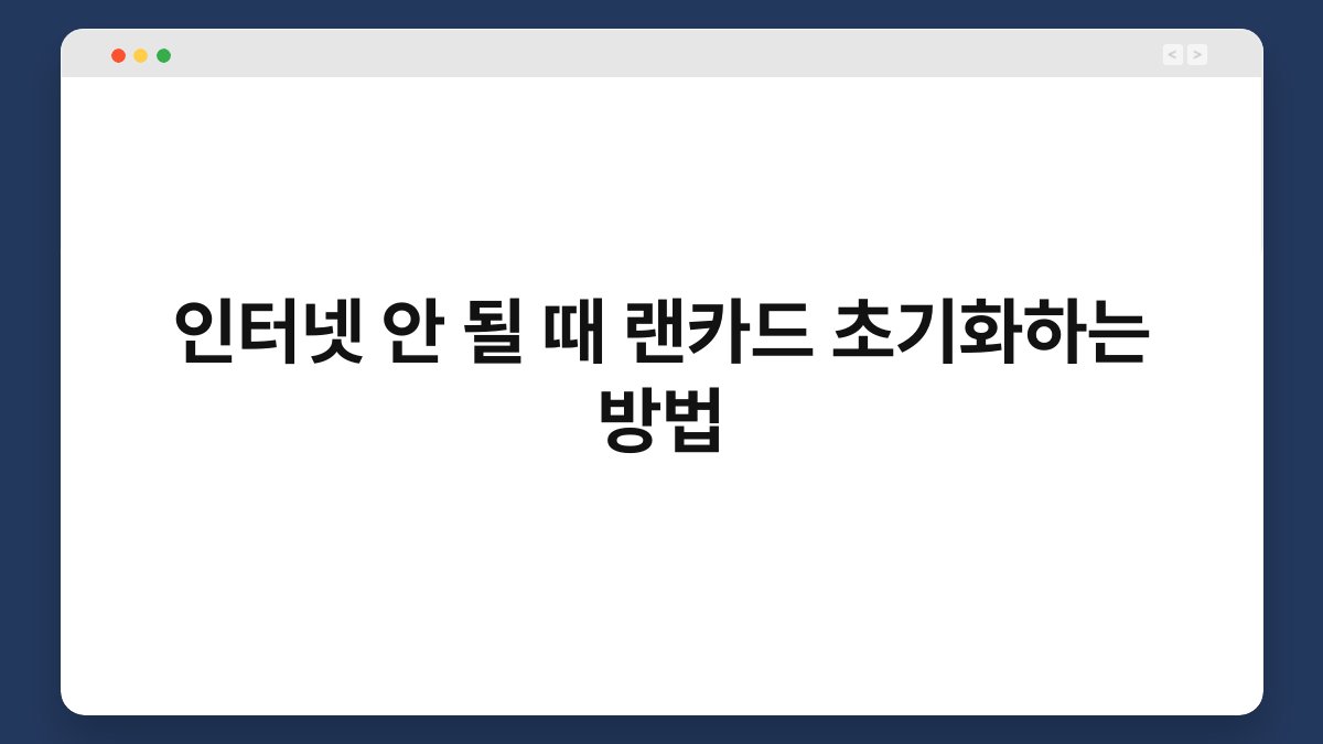 인터넷이 갑자기 먹통이 되면 정말 난감하죠? 특히 중요한 업무나 온라인 소통이 필요할 때 더욱 그렇습니다. 이럴 때 랜카드를 초기화하면 문제를 해결할 수 있는 방법이 있습니다. 랜카드 초기화는 복잡한 과정이 아니며, 몇 가지 간단한 단계를 통해 쉽게 할 수 있습니다. 이번 글에서는 인터넷이 안 될 때 랜카드를 초기화하는 방법을 자세히 소개해드리겠습니다. 끝까지 함께 해주세요!