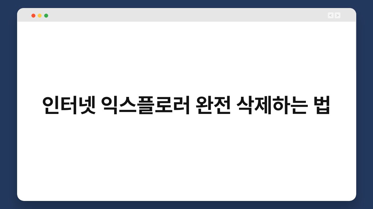 인터넷 익스플로러, 이제는 많은 사용자에게 익숙한 과거의 웹 브라우저입니다. 하지만 최신 기술과 보안 문제로 인해 더 이상 사용하지 않기로 결정한 분들이 많습니다. 그렇다면 이 브라우저를 완전히 삭제하는 방법은 무엇일까요? 이 글에서는 인터넷 익스플로러를 완전히 삭제하는 법에 대해 자세히 안내해 드리겠습니다. 마지막까지 읽으시면 깔끔하게 브라우저를 정리할 수 있는 팁을 얻을 수 있습니다.