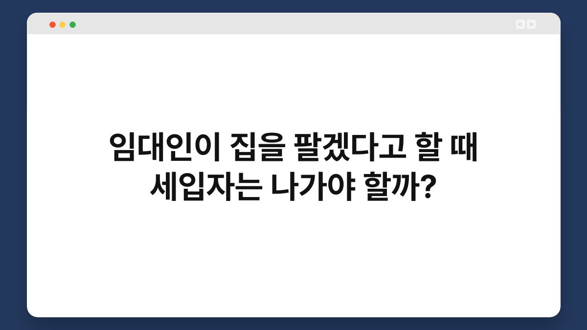 임대인이 집을 팔겠다고 하면, 세입자는 어떤 선택을 해야 할까요? 많은 세입자들이 이 상황에서 불안감을 느끼곤 합니다. 내 집처럼 살던 공간을 떠나야 하는지, 아니면 계속 거주할 수 있는지에 대한 고민이 커지기 때문입니다. 이 글에서는 임대인이 집을 팔겠다고 할 때 세입자가 알아야 할 권리와 의무를 상세히 살펴보겠습니다. 여러분이 이 글을 통해 명확한 답을 찾을 수 있기를 바랍니다.