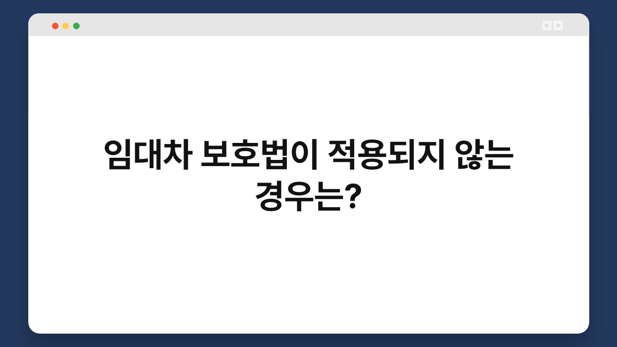 임대차 보호법, 많은 분들이 들어보셨죠? 하지만 이 법이 적용되지 않는 경우는 어떤 상황일까요? 오늘은 임대차 보호법의 적용 범위를 살펴보며, 여러분이 놓치기 쉬운 부분들을 짚어보겠습니다. 이 글을 통해 임대차 보호법이 적용되지 않는 다양한 사례를 이해하고, 여러분의 권리를 지키는 데 도움을 드리고자 합니다. 끝까지 함께해 주세요!