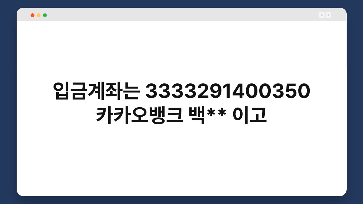 ✅ 입금계좌는 3333291400350 카카오뱅크 백**입니다.