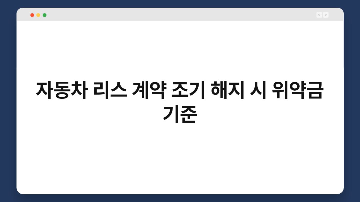 자동차 리스 계약, 처음에는 매력적으로 느껴지지만, 상황이 변하면 조기 해지라는 선택을 해야 할 때가 있습니다. 이럴 때 위약금이 발생하는데, 그 기준이 무엇인지 궁금하시죠? 조기 해지 시 위약금은 계약서에 명시된 조항에 따라 달라지며, 이에 대한 이해가 필요합니다. 오늘은 자동차 리스 계약 조기 해지 시 위약금 기준에 대해 알아보겠습니다. 이 정보를 통해 불필요한 비용을 줄일 수 있는 방법을 찾아보세요.
