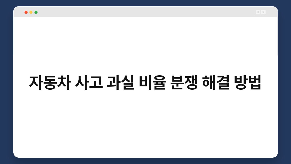 교통사고는 누구에게나 일어날 수 있는 불행한 사건입니다. 사고가 발생하면 과실 비율에 대한 논란이 종종 발생하죠. 이럴 때, 어떻게 분쟁을 해결할 수 있을까요? 과실 비율 분쟁은 단순히 감정적인 문제가 아니라 법적, 재정적인 측면에서도 중요한 이슈입니다. 이 글에서는 자동차 사고 과실 비율 분쟁의 해결 방법을 구체적으로 살펴보겠습니다.