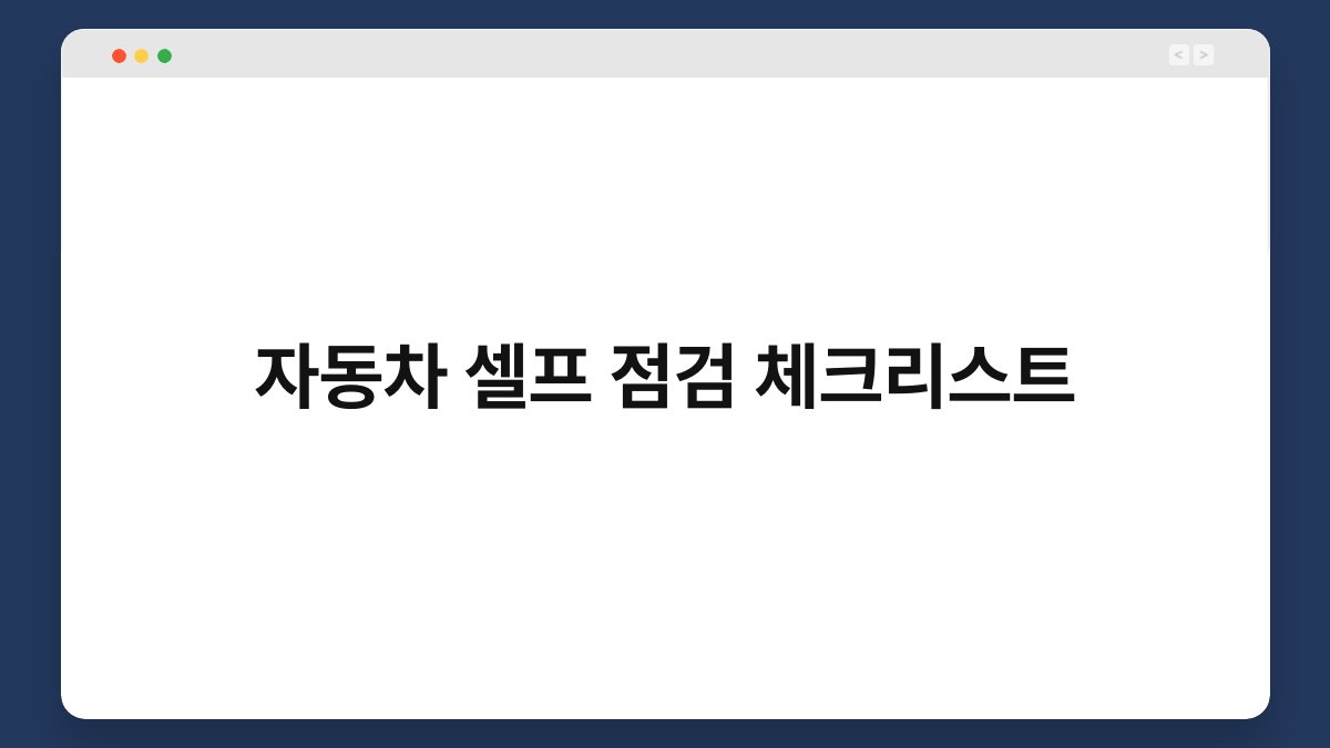 자동차를 운전하며 느끼는 자유로움, 하지만 그 자유를 만끽하기 위해서는 차량의 상태가 항상 최상이어야 합니다. 자동차 셀프 점검 체크리스트는 당신의 소중한 차량을 안전하게 유지하는 데 큰 도움이 됩니다. 이 글에서는 차량 점검의 중요성과 셀프 점검 방법에 대해 알아보겠습니다. 모든 운전자가 알아야 할 필수 정보가 가득하니 끝까지 함께 해주세요.