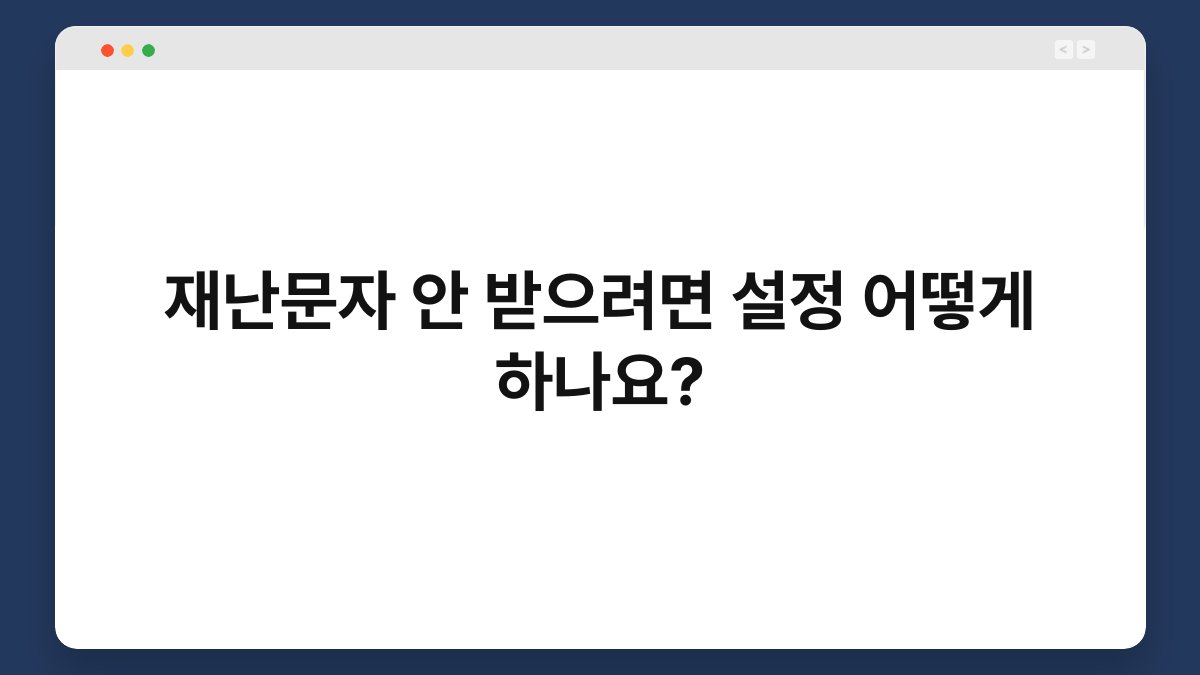재난문자는 불가피한 상황에서 중요한 정보를 전달해 주지만, 때로는 그 알림이 불편하게 느껴질 수 있습니다. 특히 반복적으로 오는 메시지 때문에 스트레스를 받는 분들도 많으실 텐데요. 그래서 오늘은 재난문자를 받지 않으려면 어떻게 설정을 변경해야 하는지를 알아보겠습니다. 이 글을 통해 간단한 설정 방법을 익히고, 원치 않는 메시지에서 벗어나 보세요.