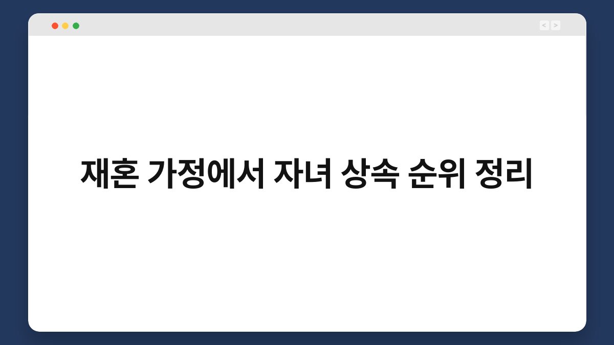 A1: 재혼 가정에서 상속 순위는 생물학적 자녀와 재혼 자녀 간의 법적 상속권에 따라 결정됩니다.